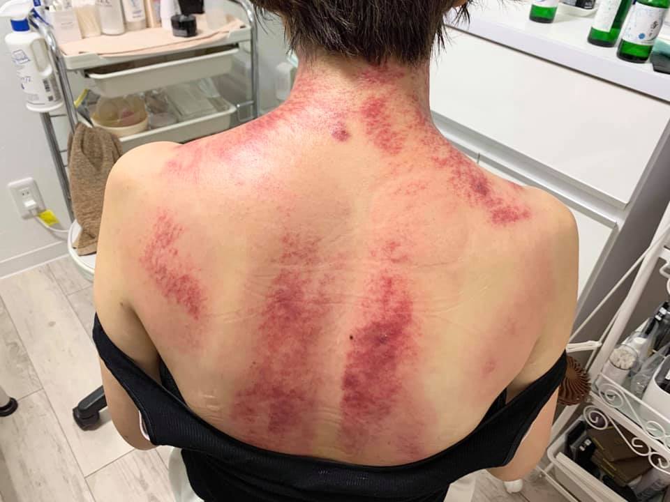 「ちょっと予定外やけど、背中もやっとくわ」とのことで、背中全体もかっさしてくれました。