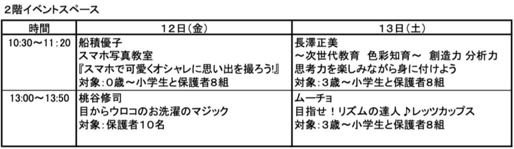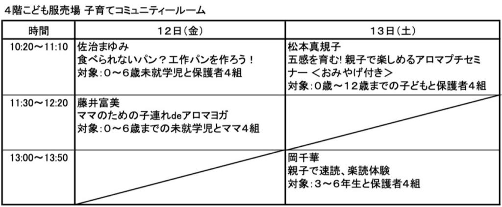 【場所】西宮阪急2階イベントスペースおよび4階こども服売場コミュニティルーム