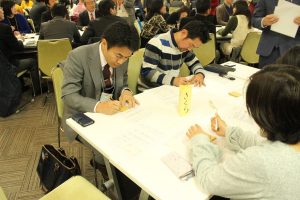 そしてチーム内で自己紹介をしながらアイデア発表、投票して、各チーム1位のアイデアを全体に発表していきます。